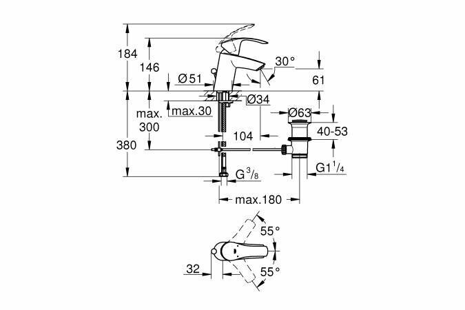 Смеситель однорычажный для раковины, GROHE Eurosmart New, S-Size, хром, (23788002) интересное: