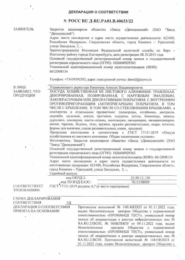 Кастрюля Демидово МТ085 10л
