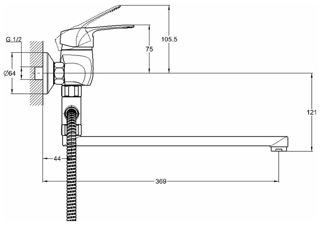 | Длина излива | 369 мм |