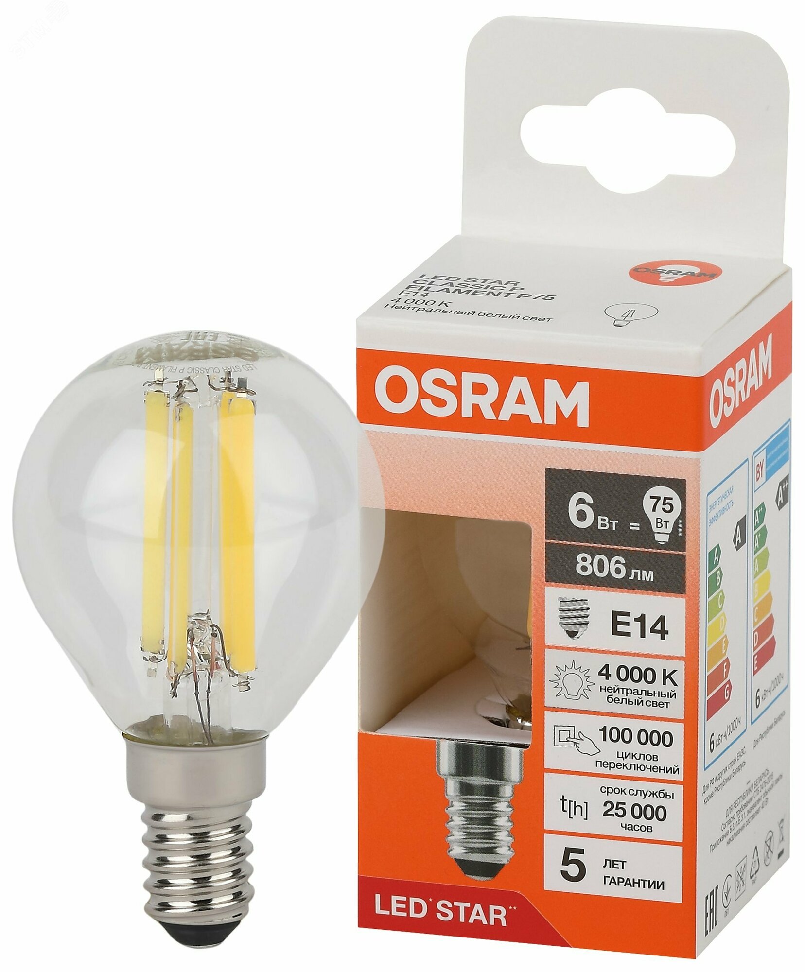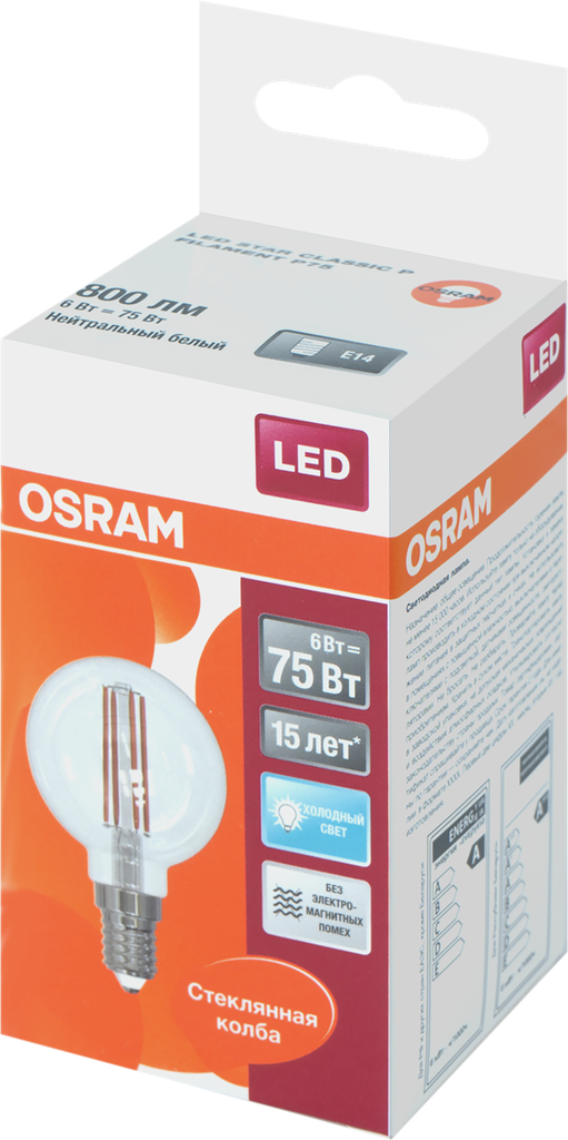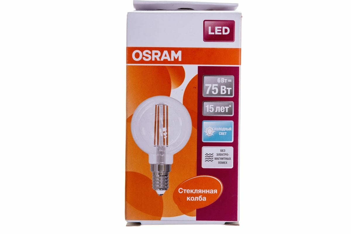 LED SCL P75 6W/840 230V CL FIL E14 850lm FS1 лампа светодиодная шарик FILLED OSRAM