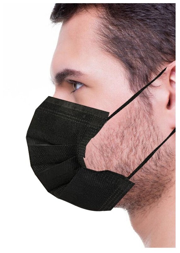 Маски медицинские одноразовые 50 шт, чёрные.
