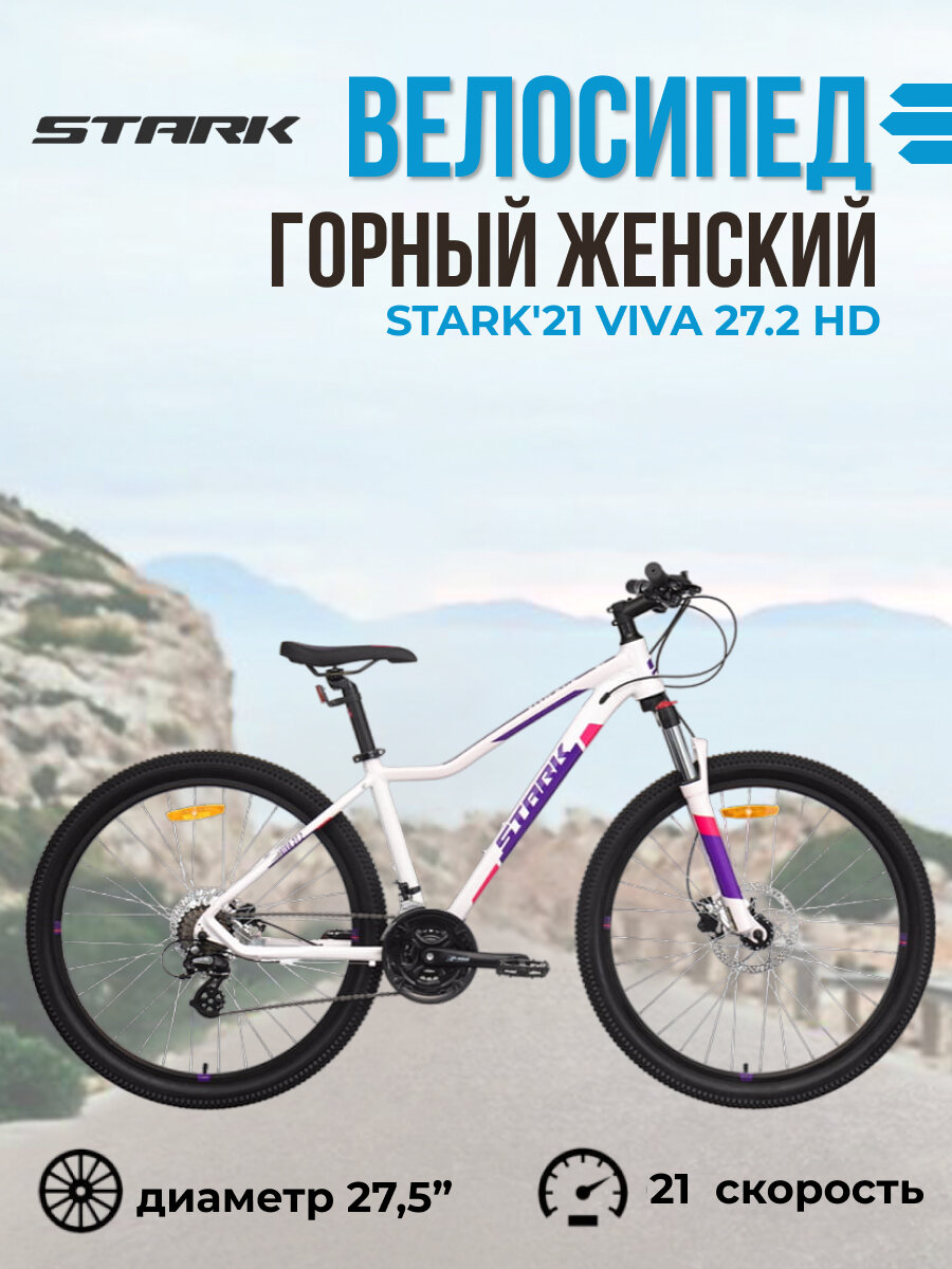 Велосипед горный женский Stark'21 Viva 27.2 HD белый/фиолетовый с колесами 27,5", рама 14,5" - XS интересное: