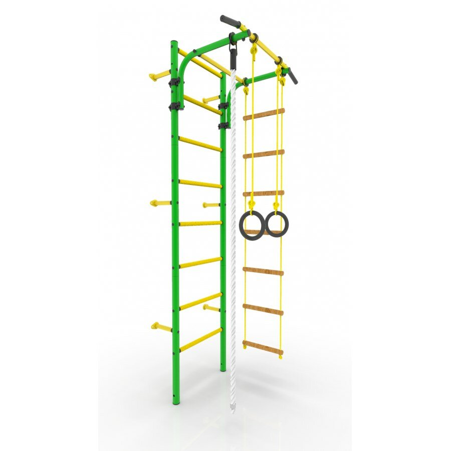 Шведская стенка Rokids Атлет-2, канат, кольца, турник, веревочная лестница, зеленый