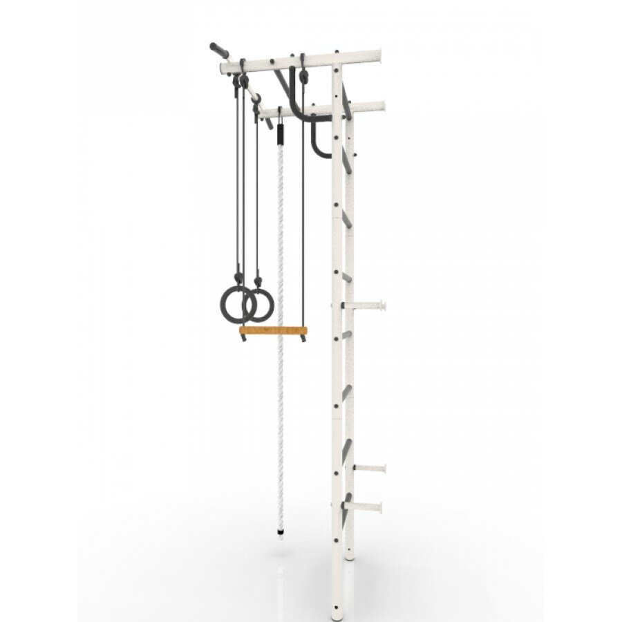 Шведская стенка Rokids Роки-1, кольца, канат, трапеция, турник, бело-серый