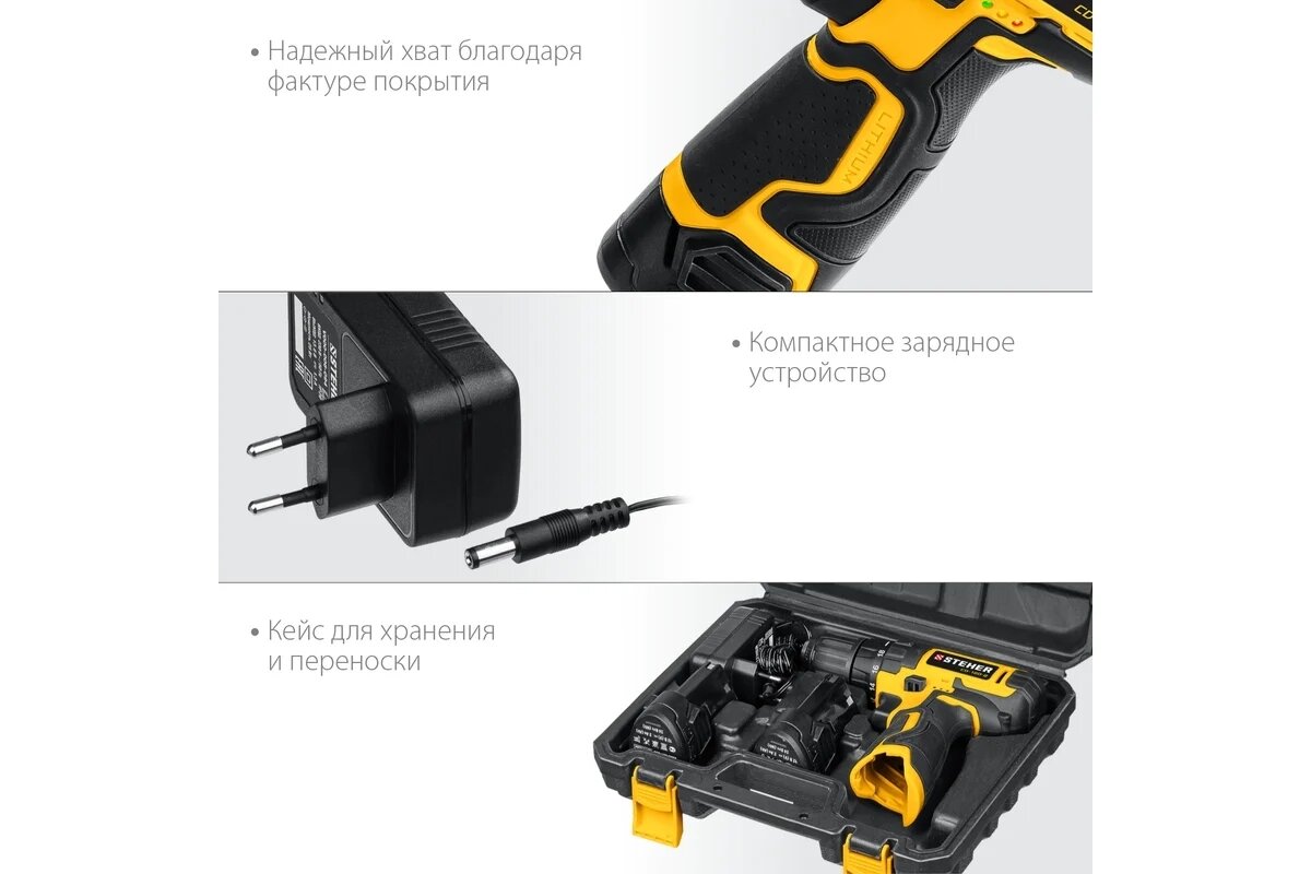 STEHER 12 В, 35 Н·м, 1 АКБ (2 А·ч), бесщеточная дрель-шуруповерт, кейс (CDB-120-1)