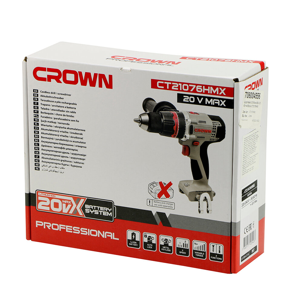 Купить Дрель-шуруповерт аккумуляторная Crown Professional CROWN CT21076HMX, без АКБ и ЗУ