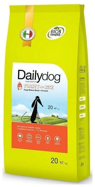 DailyDog Для щенков средних пород с индейкой и рисом 657ДД12, 12 кг, 57947