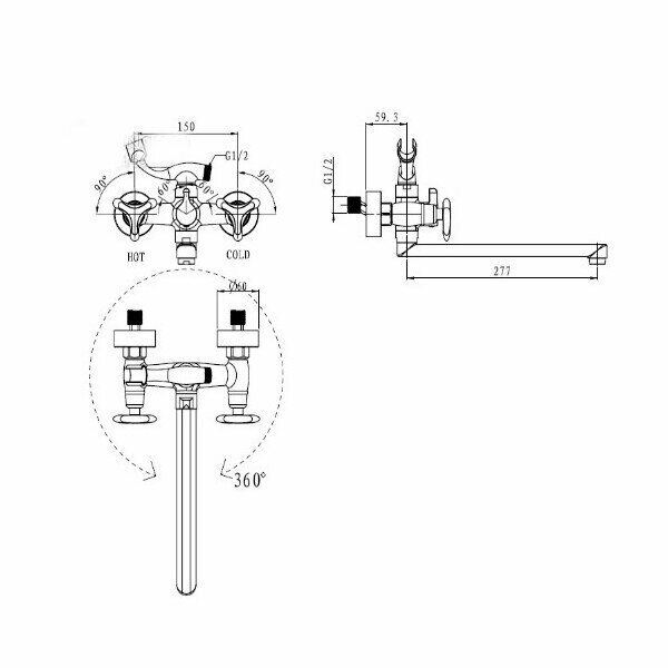 Смеситель универсальный KAISER Trio - 57055 (двухвентильный, цвет хром)