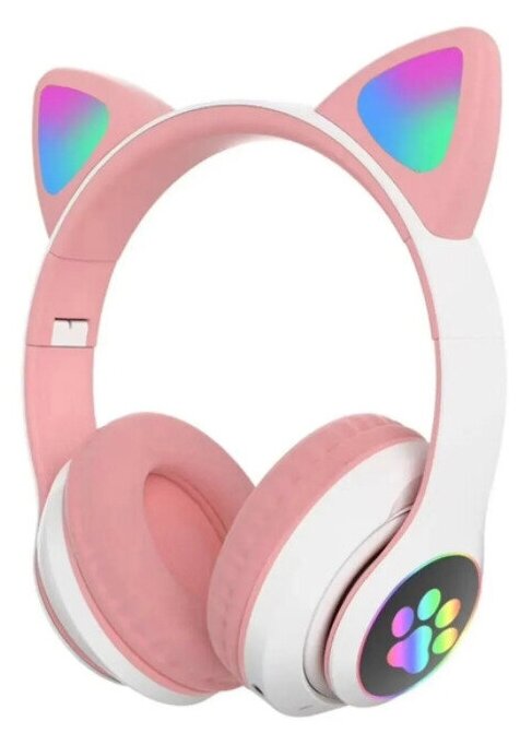 Купить Наушники беспроводные детские с ушками / Наушники беспроводные/Светящиеся детские беспроводные наушники с ушками/с ушами / Блютуз наушники с рисунком кошачьи лапки / Игровые bluetooth наушники с микрофоном