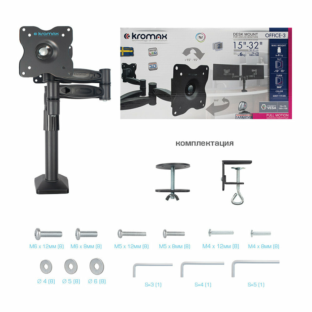 Кронштейн настольный для TV/монитора KROMAX OFFICE-3, 15"-32", до 12 кг