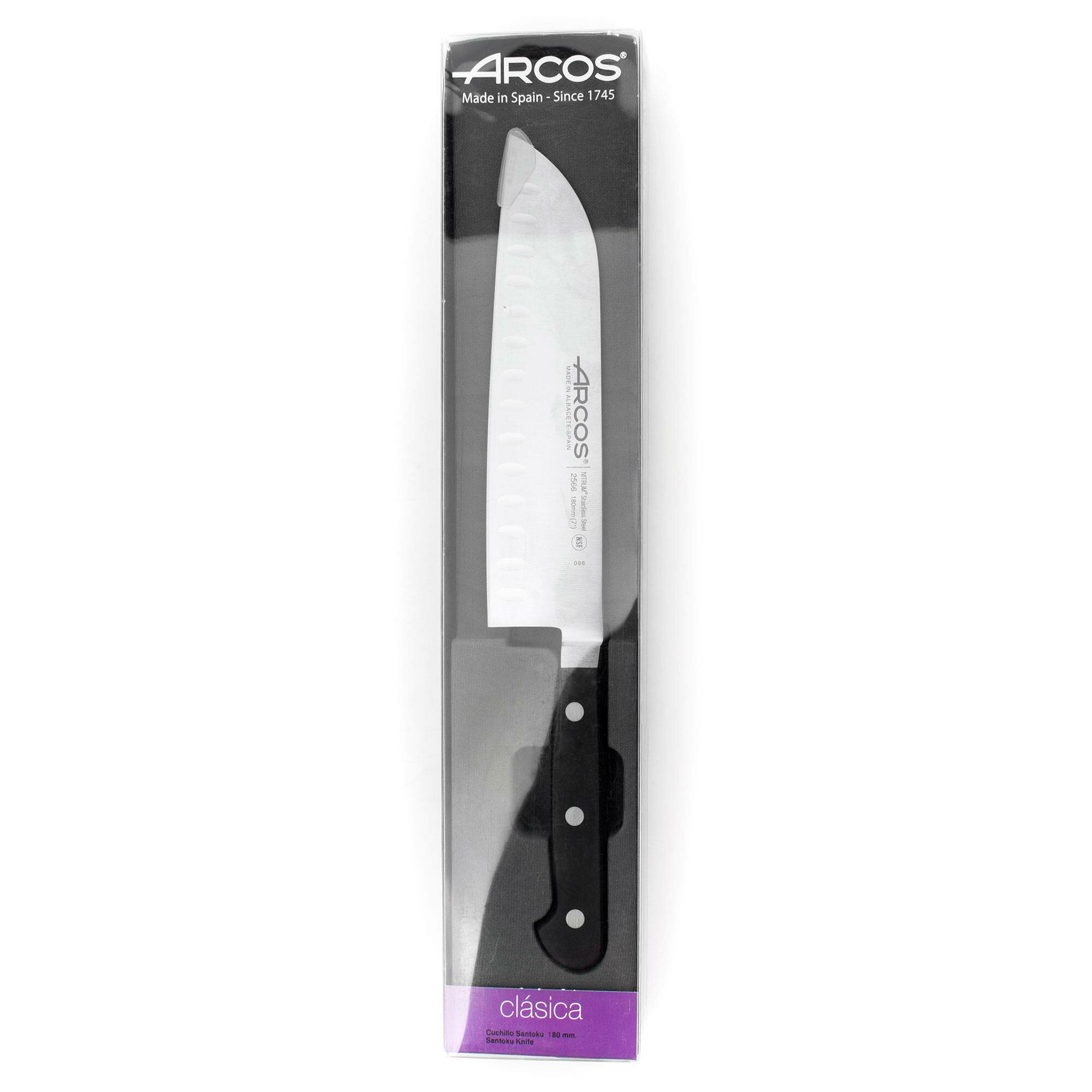 Нож сантоку ARCOS Clasica 18 см 2566 Испания, нержавеющая сталь, черный