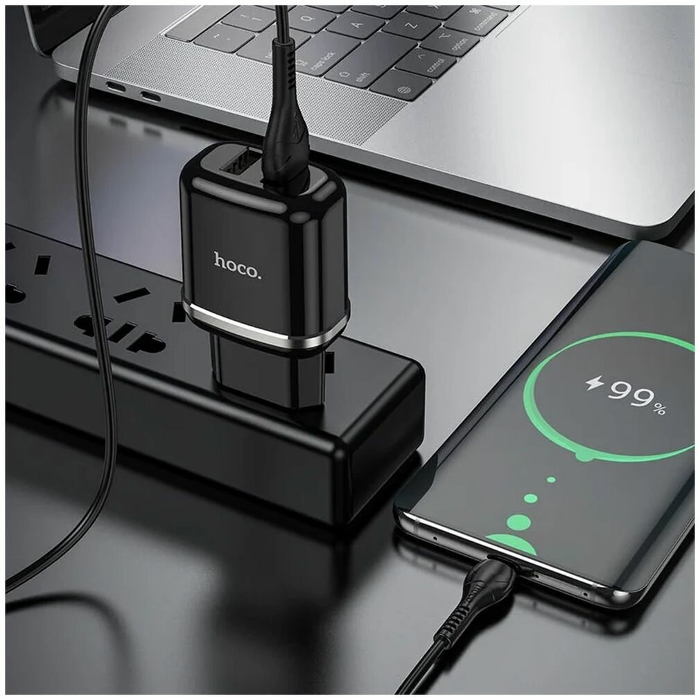Сетевое зарядное устройство, 2 USB 2.4A 12W (N4), HOCO, Micro, Умная зарядка, черный