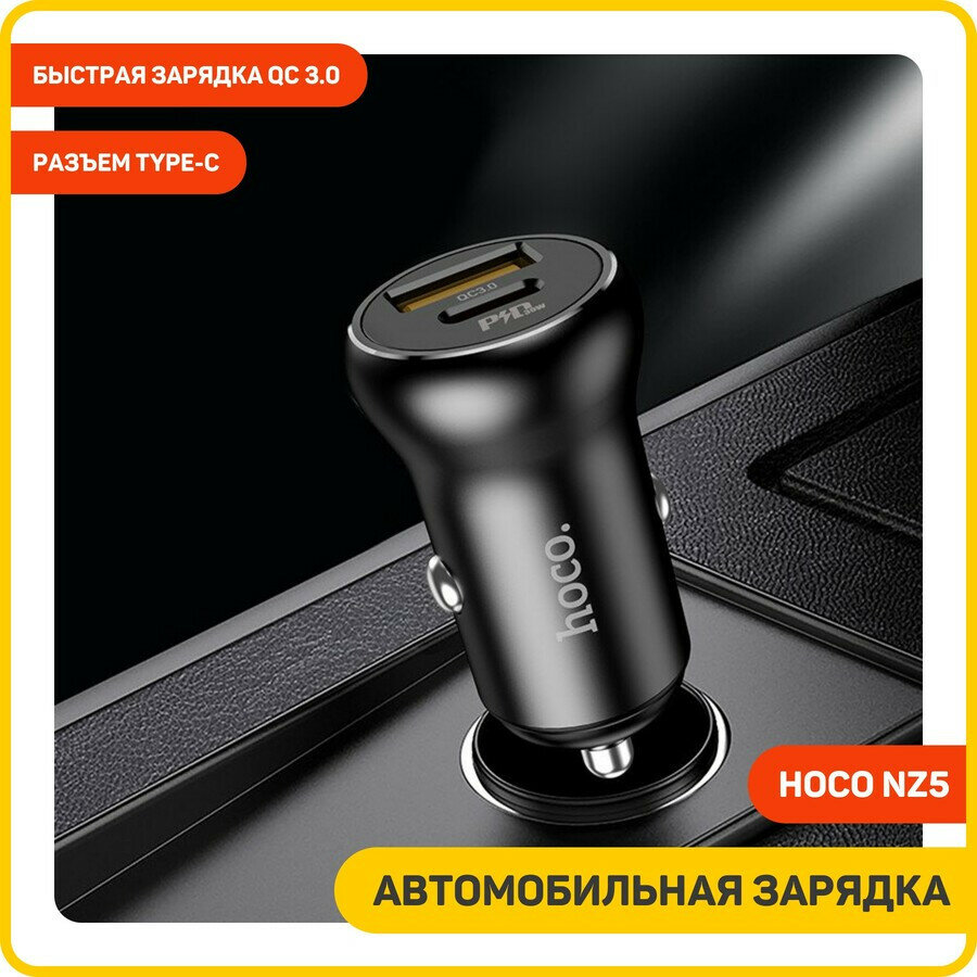 Автомобильное зарядное устройство (АЗУ) Hoco NZ5 QC 3.0 (USB+Type-C) 5 А, черный