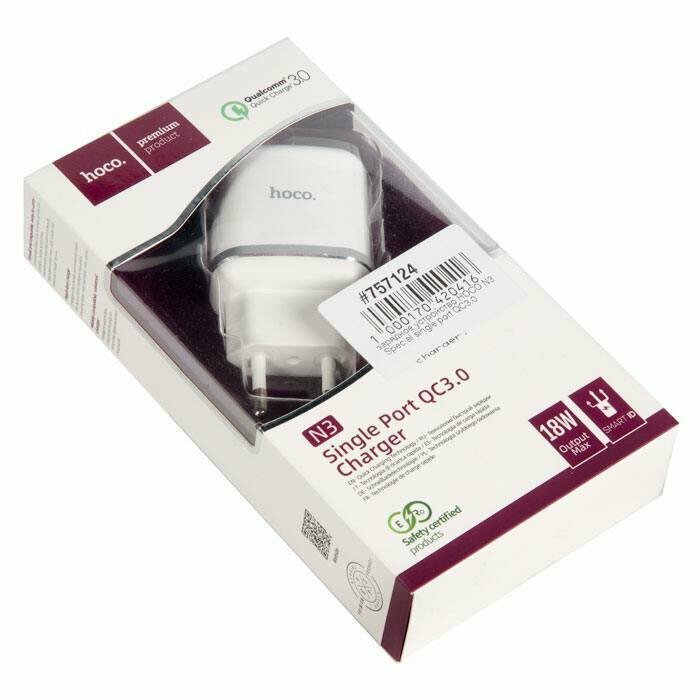 Зарядное устройство HOCO N3 Special QC3.0, 18W, один порт USB, 5V, 3.0A, белый, 6931474729354
