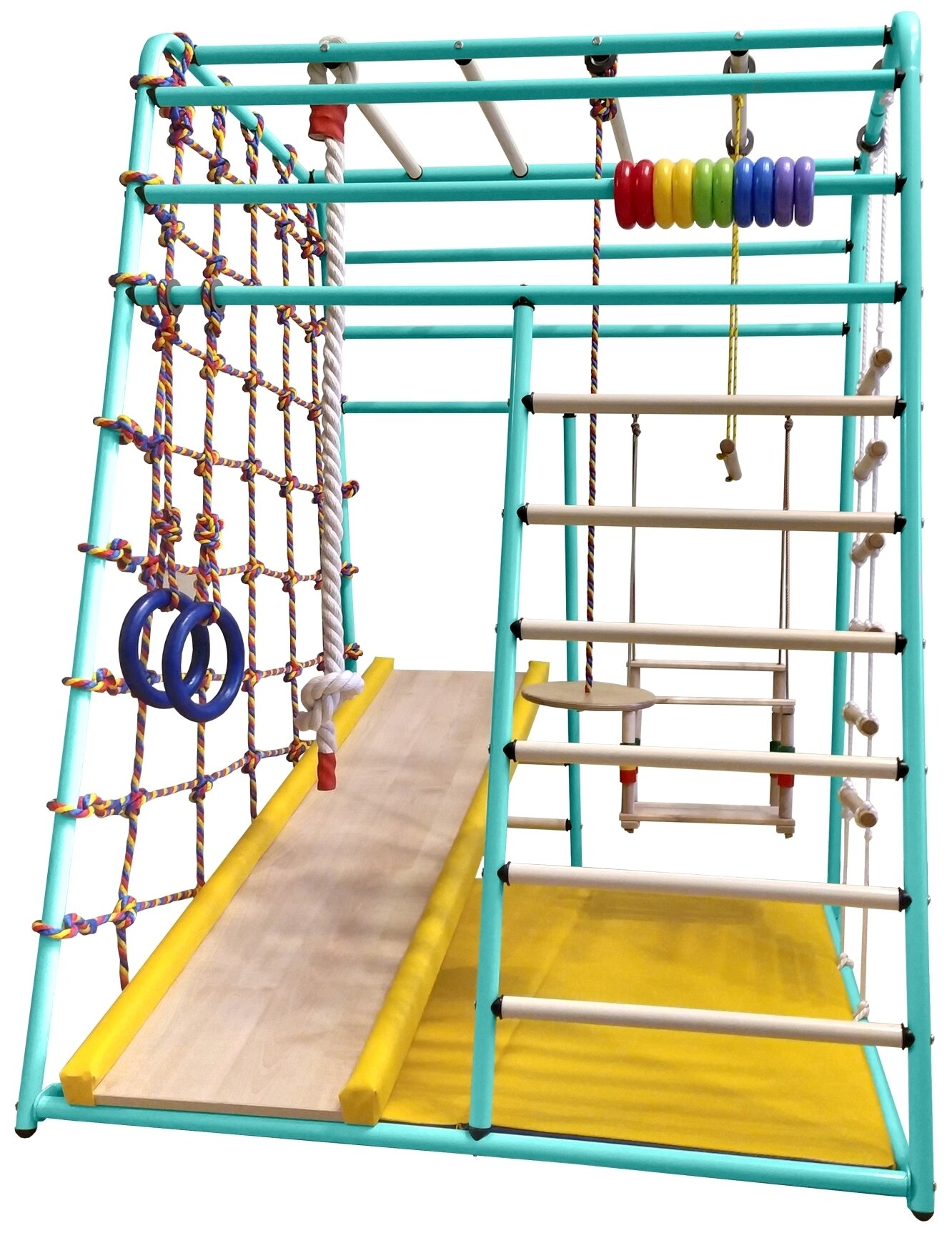 | В комплекте | веревочная лестница, гимнастические кольца, горка, канат, качели, мат, сетка для лазания, тарзанка, трапеция |