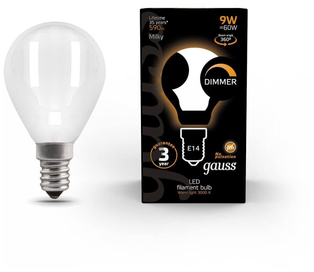 Типы/Лампочки/Филаментные Gauss Лампа светодиодная филаментная диммируемая Gauss E14 9W 3000К матовая 105201109-D интересное: