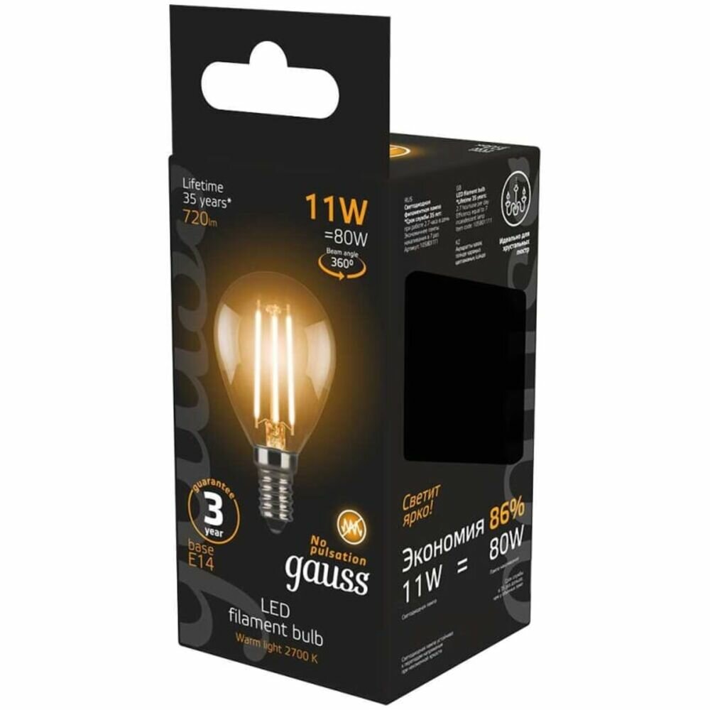 СохранитьСветодиодная лампа Gauss LED Filament Шар E14 11W 720lm 2700K (упаковка 10 шт.) интересное:
