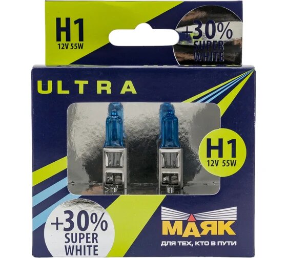 Лампа галогенная маяк ULTRA SUPER WHITE +30% 12V H1 55W 2 шт 82120SW+30 интересное: