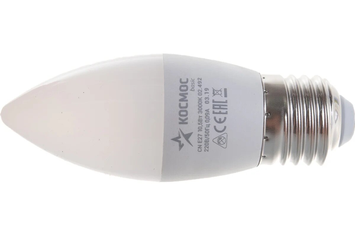Светодиодная лампа Космос, свеча, 8.5 Вт, E27, 3000 K, LED8.5wCNE2730, теплый белый