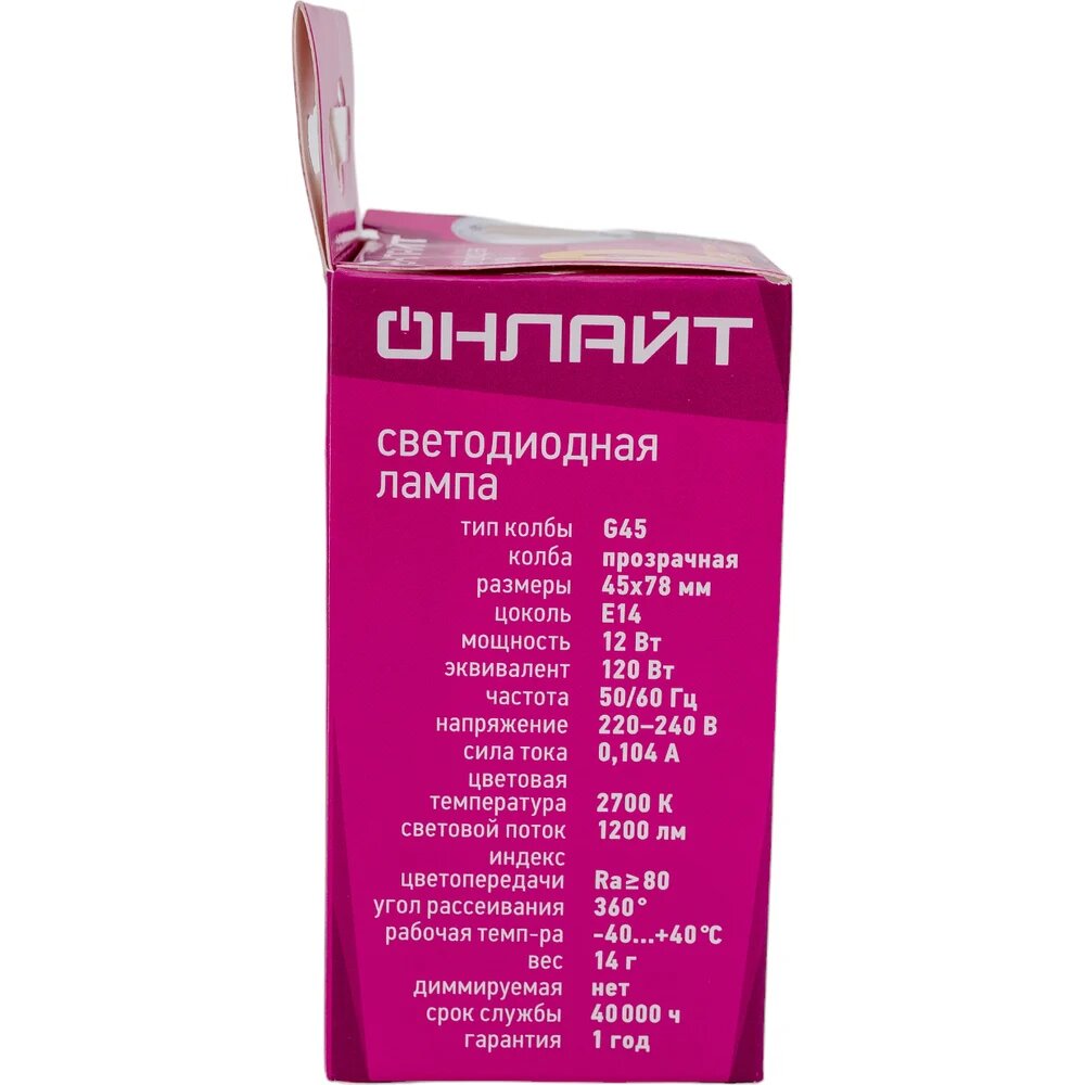 Лампа светодиодная онлайт 80 890 OLL-F-G45-12-230-2.7K-E14