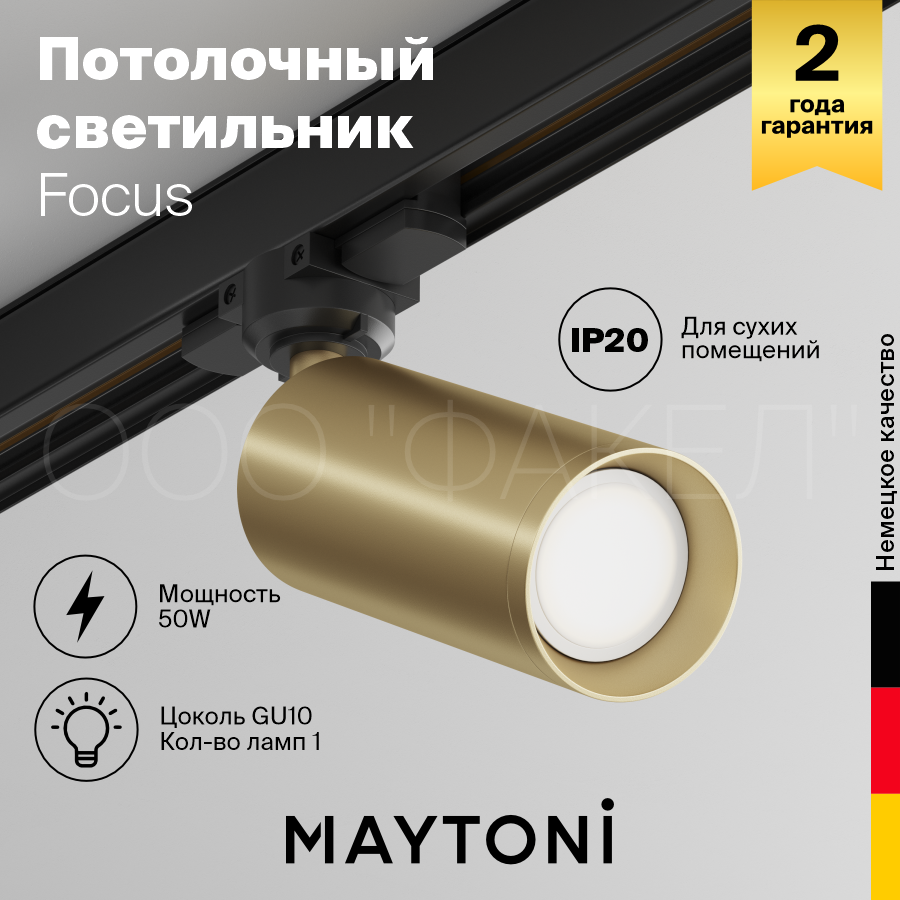 Трековый светильник Maytoni Focus Trinity TR028-3-GU10-MG, GU10, кол-во ламп:1шт., Золото