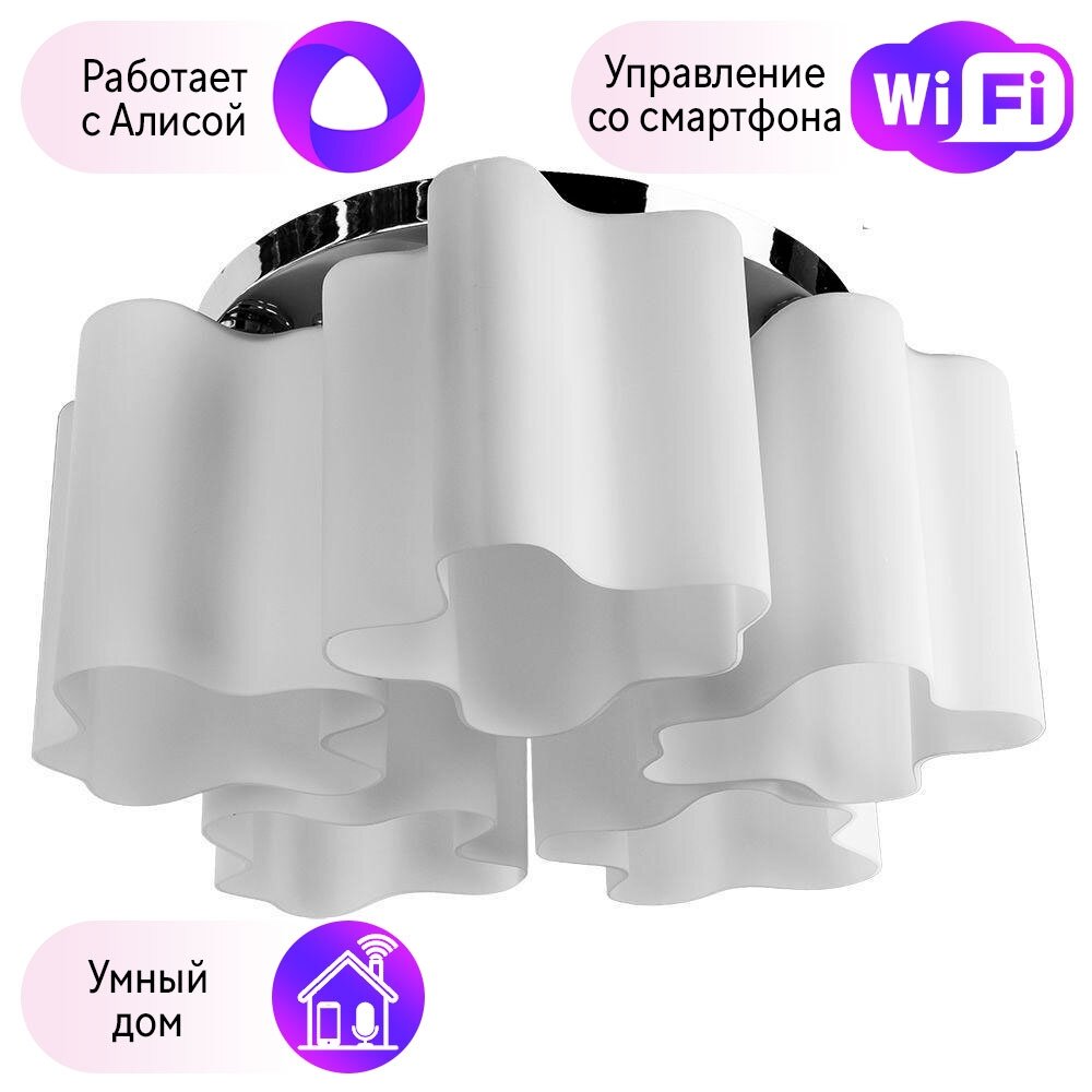 Люстра с пультом светодиодная потолочная 176W, 8 ламп, цветок, большая, белая, LEDCITY