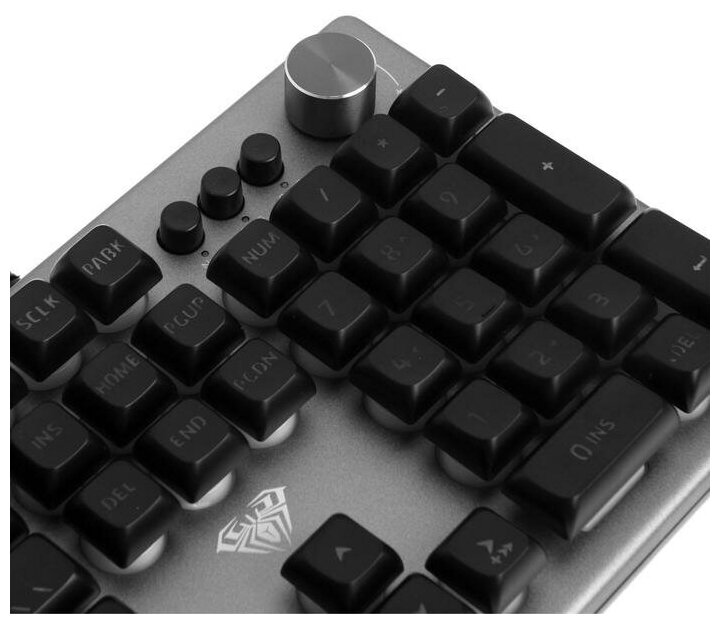 Клавиатура игровая AULA F2028 мембранная 106 кл, алюминий/пластик, роллер+3 доп кнопки, RGB подсветка - кабель 1.6м