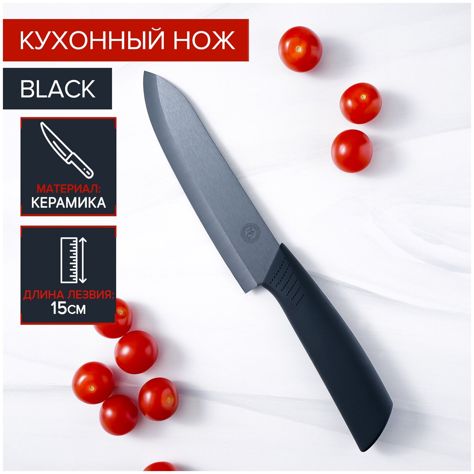 Нож кухонный керамический Black, лезвие 15 см, ручка soft-touch, цвет чёрный