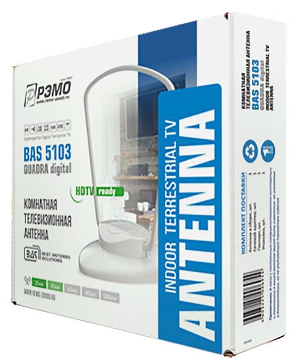 Антенны ТВ Рэмо Антенна комнатная РЭМО BAS-5103-USB QUADRA DIGITAL (активная, 5V, DVB-T2, без б/п, 33 дБи, коробка) интересное: