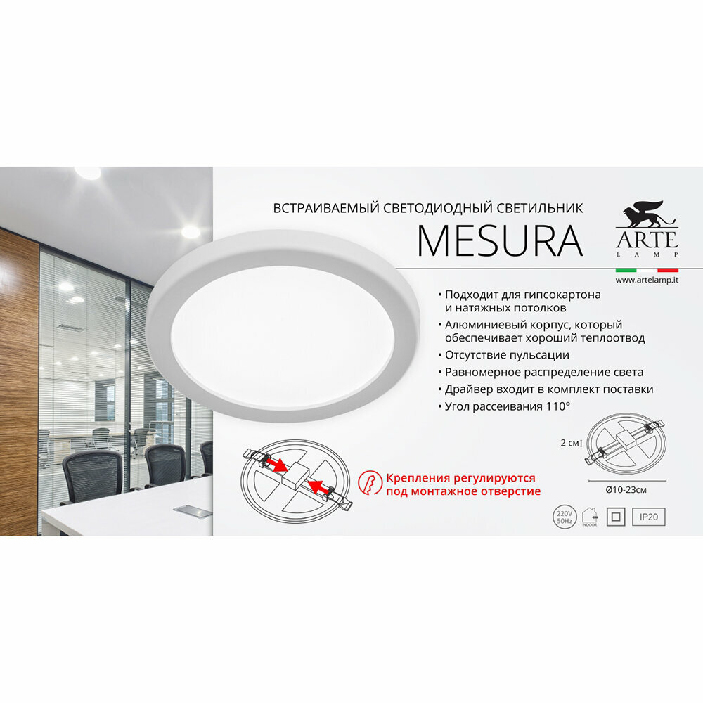 Встраиваемый светильник Arte Lamp Mesura A7976PL-1WH, LED, кол-во ламп:1шт., Белый