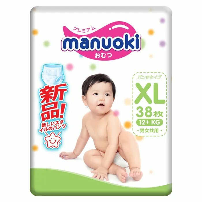Трусики-подгузники MANUOKI, размер XL, 12+ кг, 38 шт JPM003