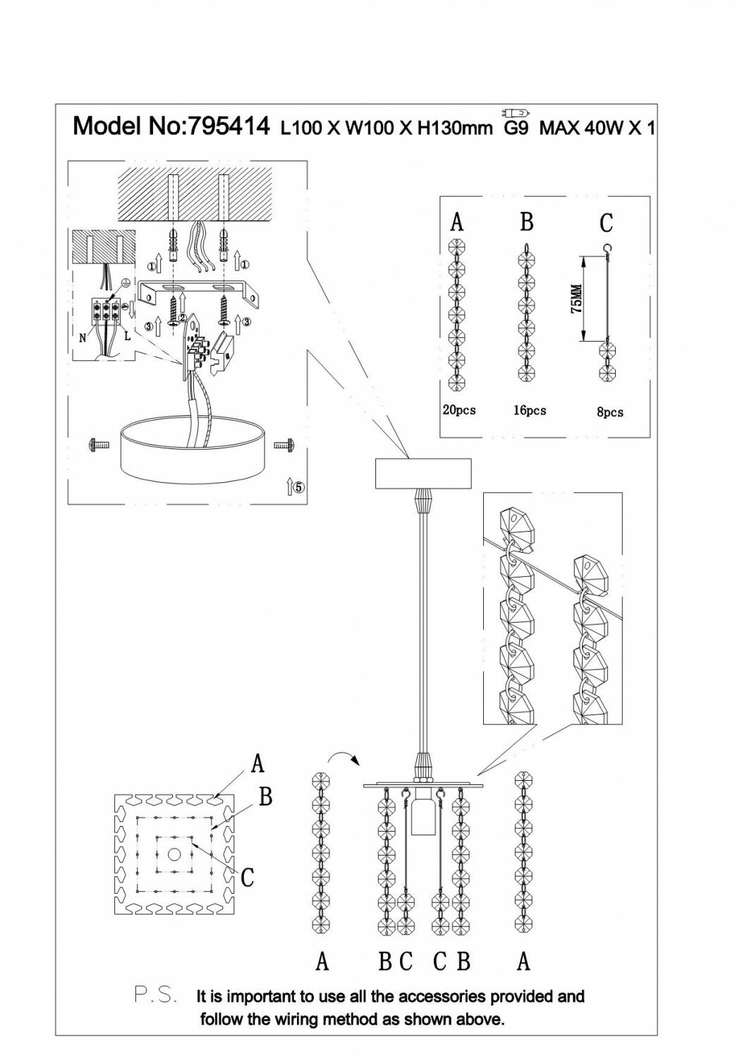 795314 Подвес CRISTALLO 1х40W G9 хром, шт