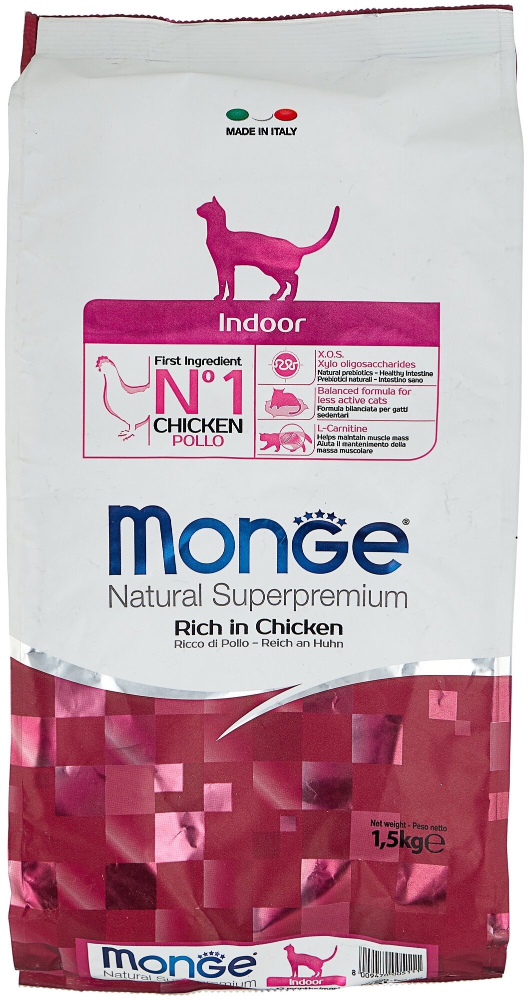 Сухой корм для кошек Monge Natural Superpremium Cat Indoor, для живущих в помещении, с курицей, 1.5 кг