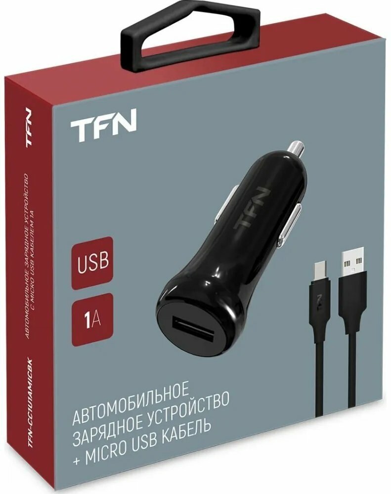 Автомобильное зарядное устройство TFN 1А+microUSB black интересное: