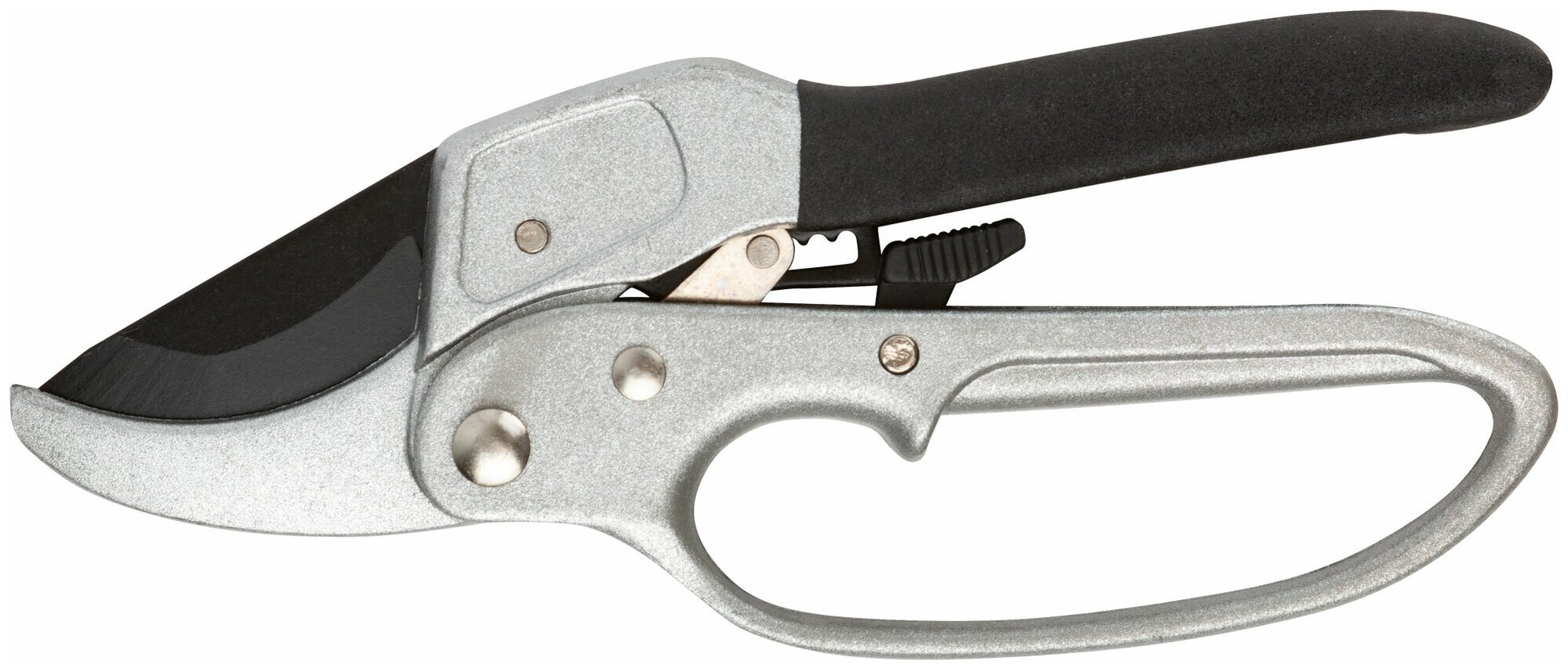 Секатор Курс храповый механизм, режущ.кромки встык с наковальней, тефл.покр.лезвий, алюм.корпус 200
