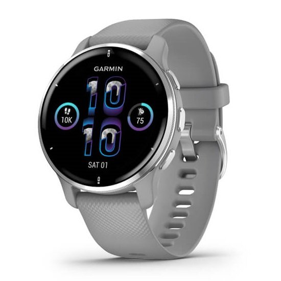 Часы Garmin VENU 2 PLUS серые с серебристым безелем и силиконовым ремешком, 010-02496-10