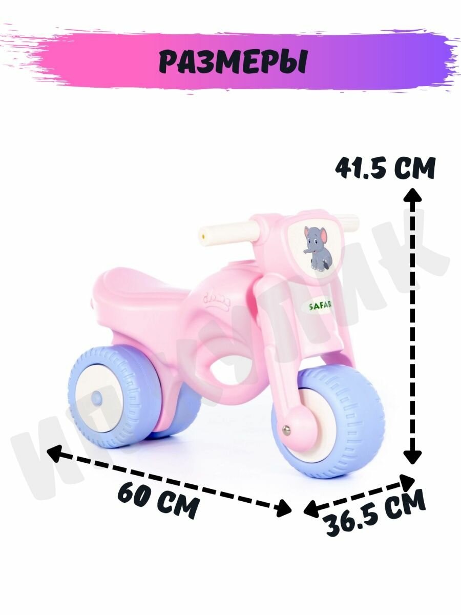 Каталка-мотоцикл (Мини-мото) сафари (розовая), размер 60х36х41см