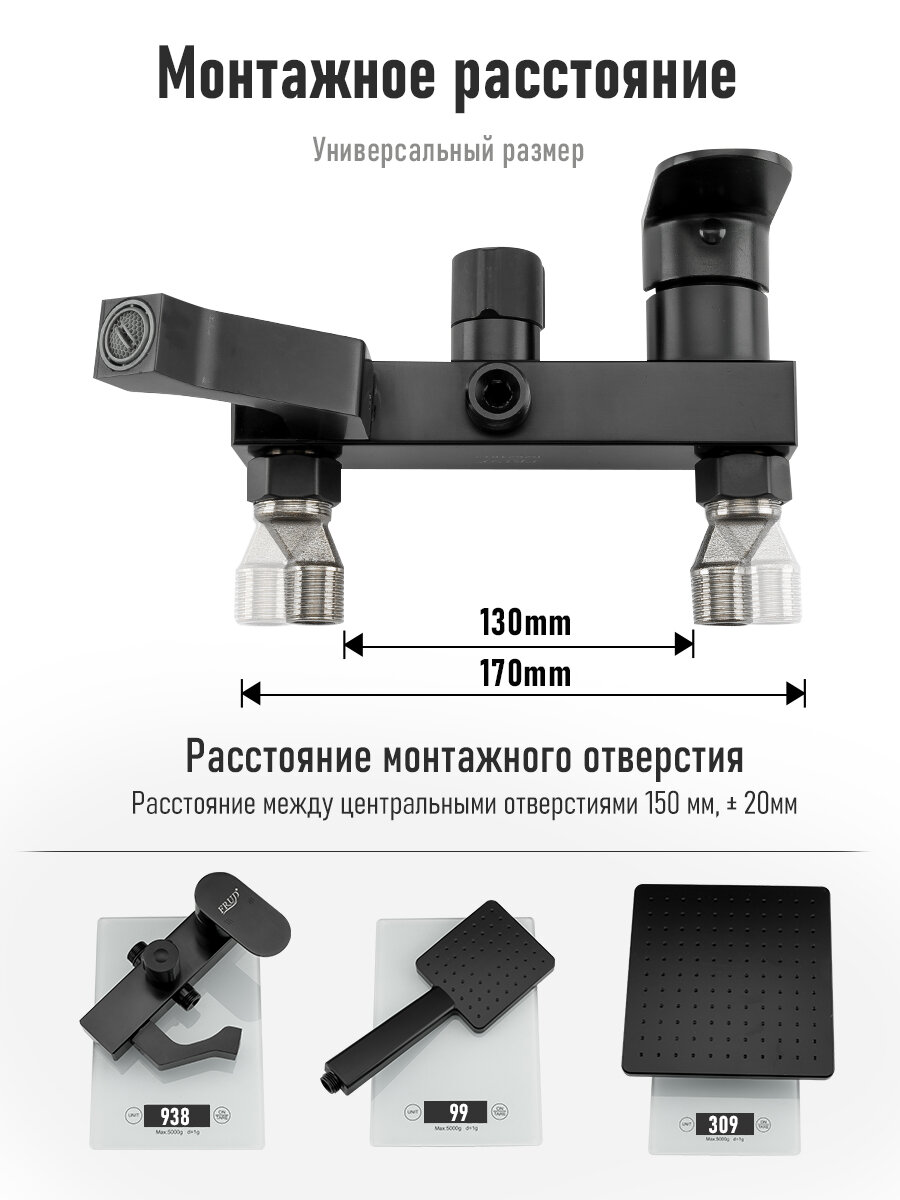| Особенности | S-образные эксцентрики / антиизвестковое покрытие / аэратор / держатель душевой лейки / регулируемый верхний душ |