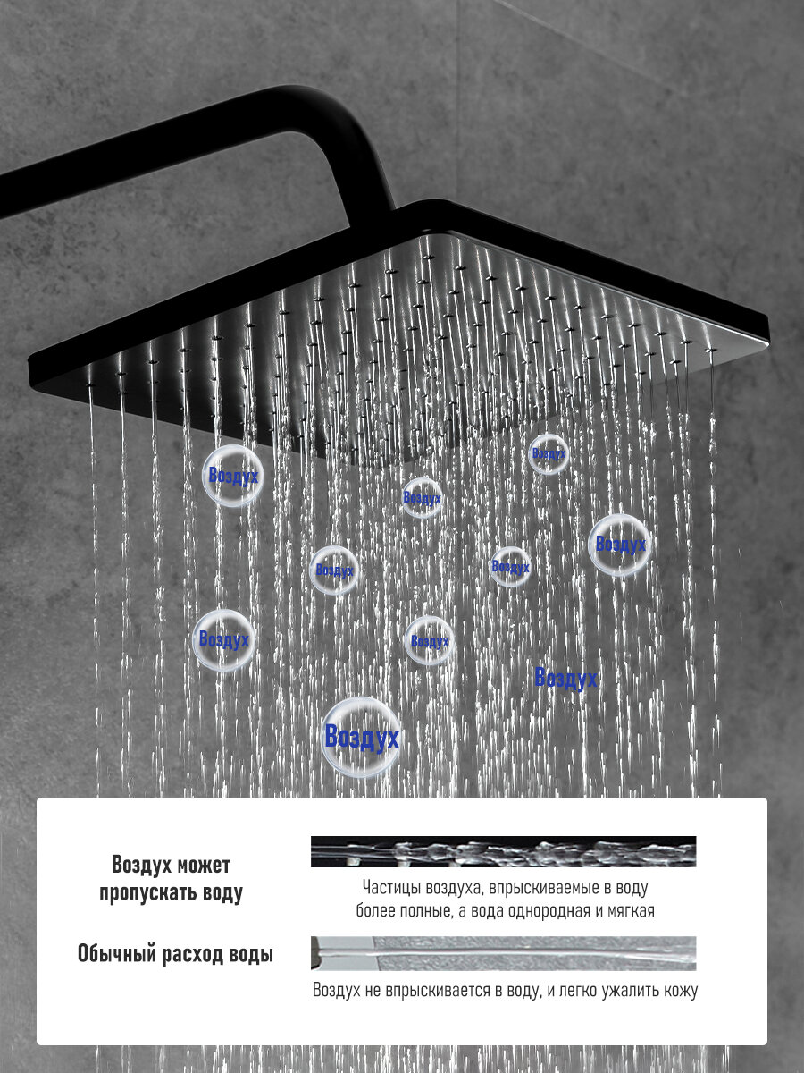 Душевая система Frud R24001-6 (стойка, тропический душ, лейка, шланг, смеситель), черная
