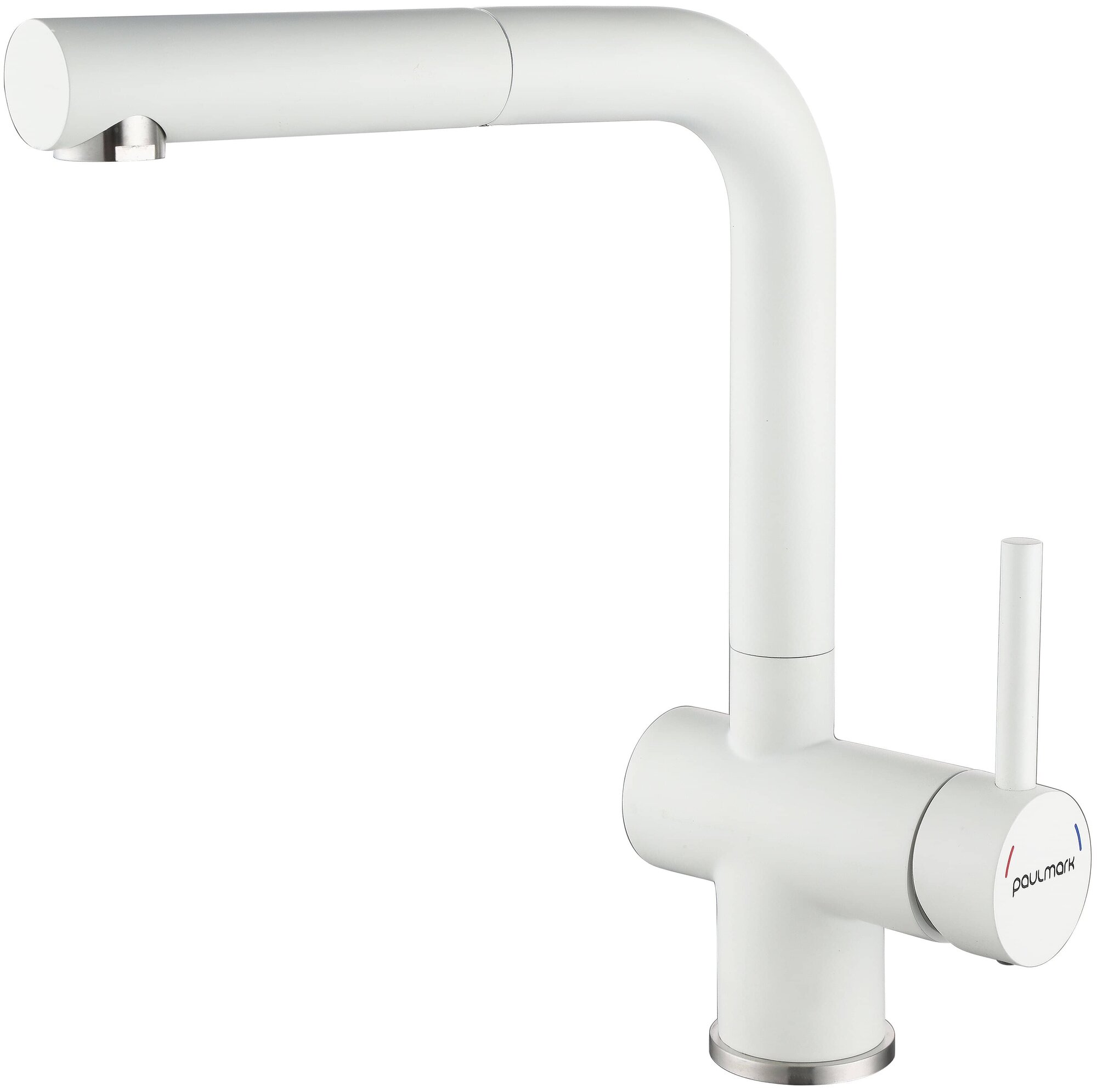 Смеситель для кухни Paulmark Dosse с выдвижной лейкой белый матовый Do214418-431