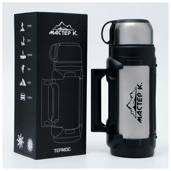 Мастер К Термос, серия: Тропа, "Мастер К.", 2 л, сохраняет тепло 24 ч, 34 х 11 см, хром интересное: