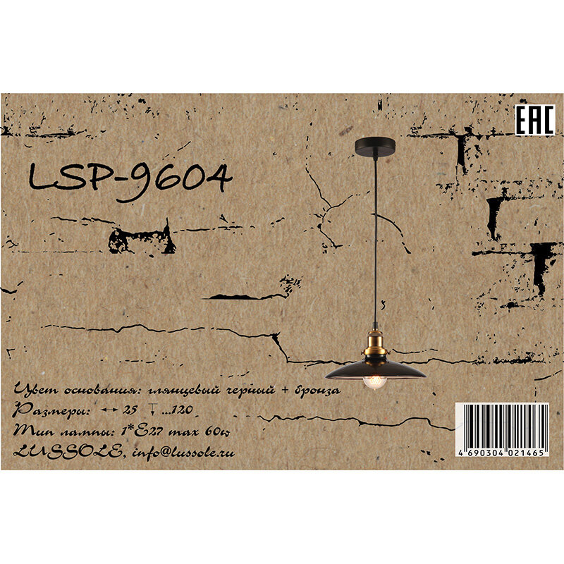 Светильник подвесной Lussole LOFT Glen Cove LSP-9604, E27, 60Вт., кол-во ламп:1шт., Черный