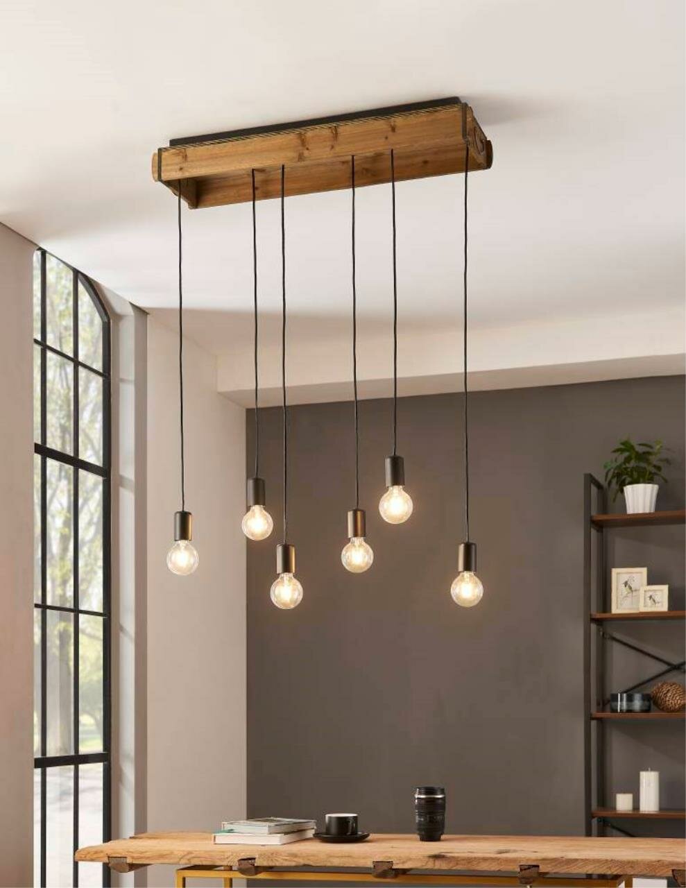 43592 Подвесной потолочный светильник (люстра) WOOTTON, 6Х40W, E27, L810, B220, H1100, сталь/дерево,