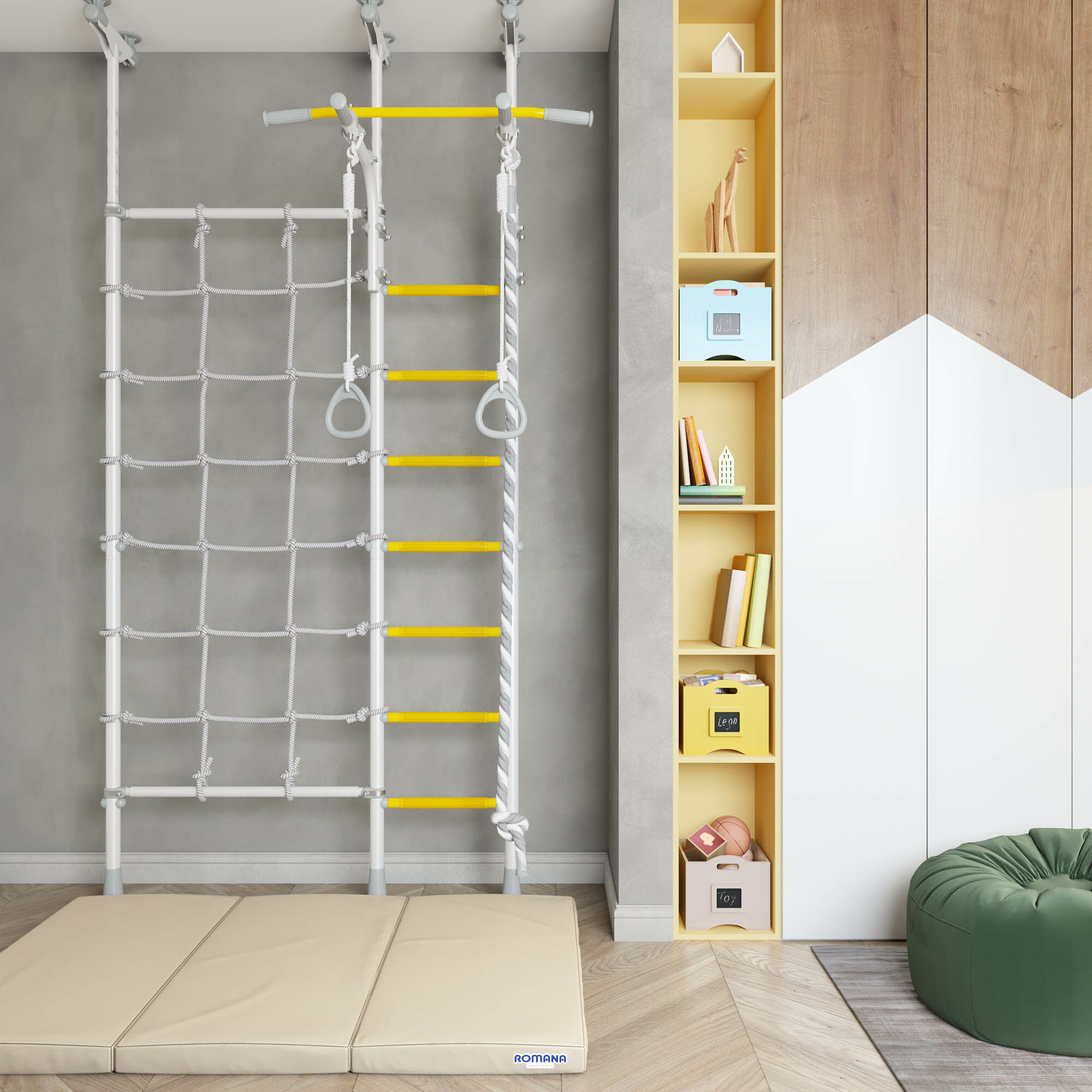 | Комплектация | гимнастические кольца / канат / сетка для лазания / турник |