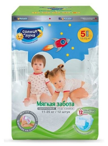 Подгузники Солнце и луна мягкая забота XL (11-25 кг), 12 шт интересное: