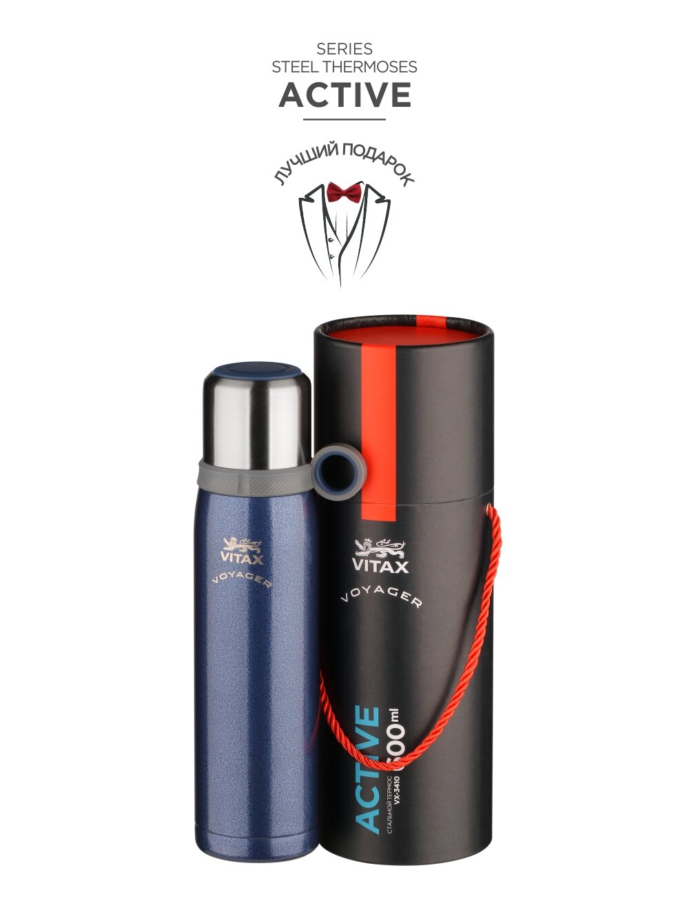 Термос 600мл Vitax нерж.сталь с двойными колбами, крышка-чашка с ручкой и защитным протектором Travel VX-3410