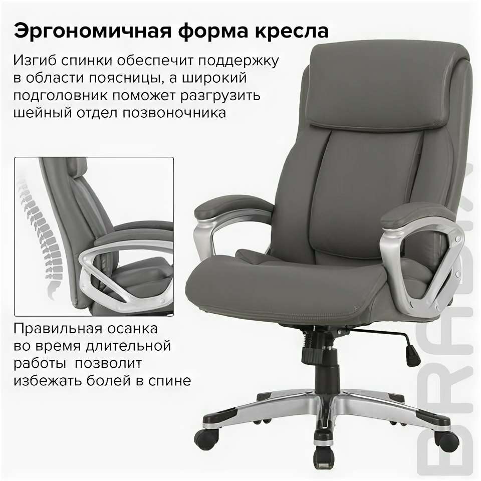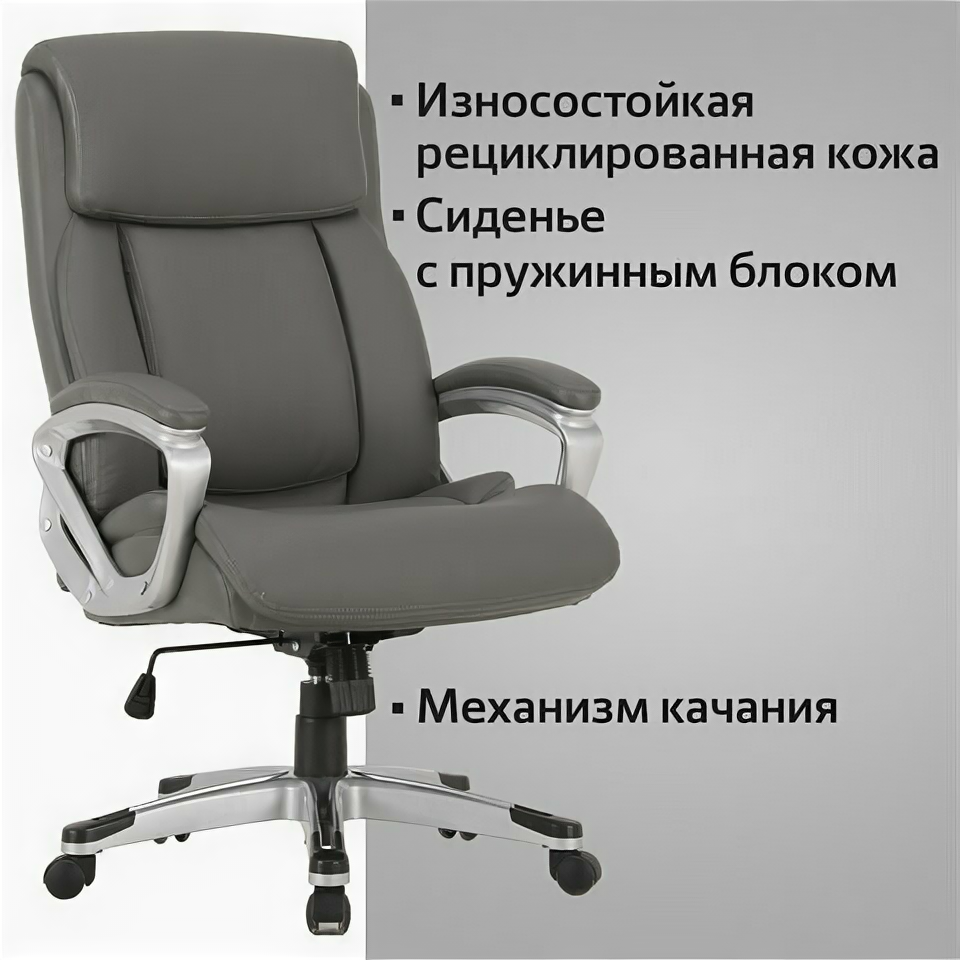 Кресло руководителя BRABIX PREMIUM Level EX-527, пружинный блок, рециклированная кожа, серое