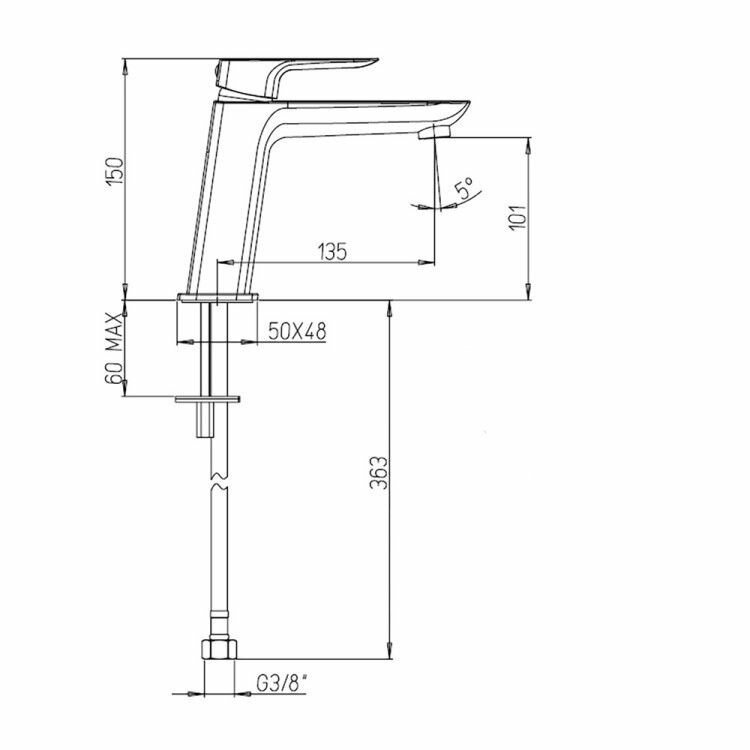 | Длина излива | 135 мм |