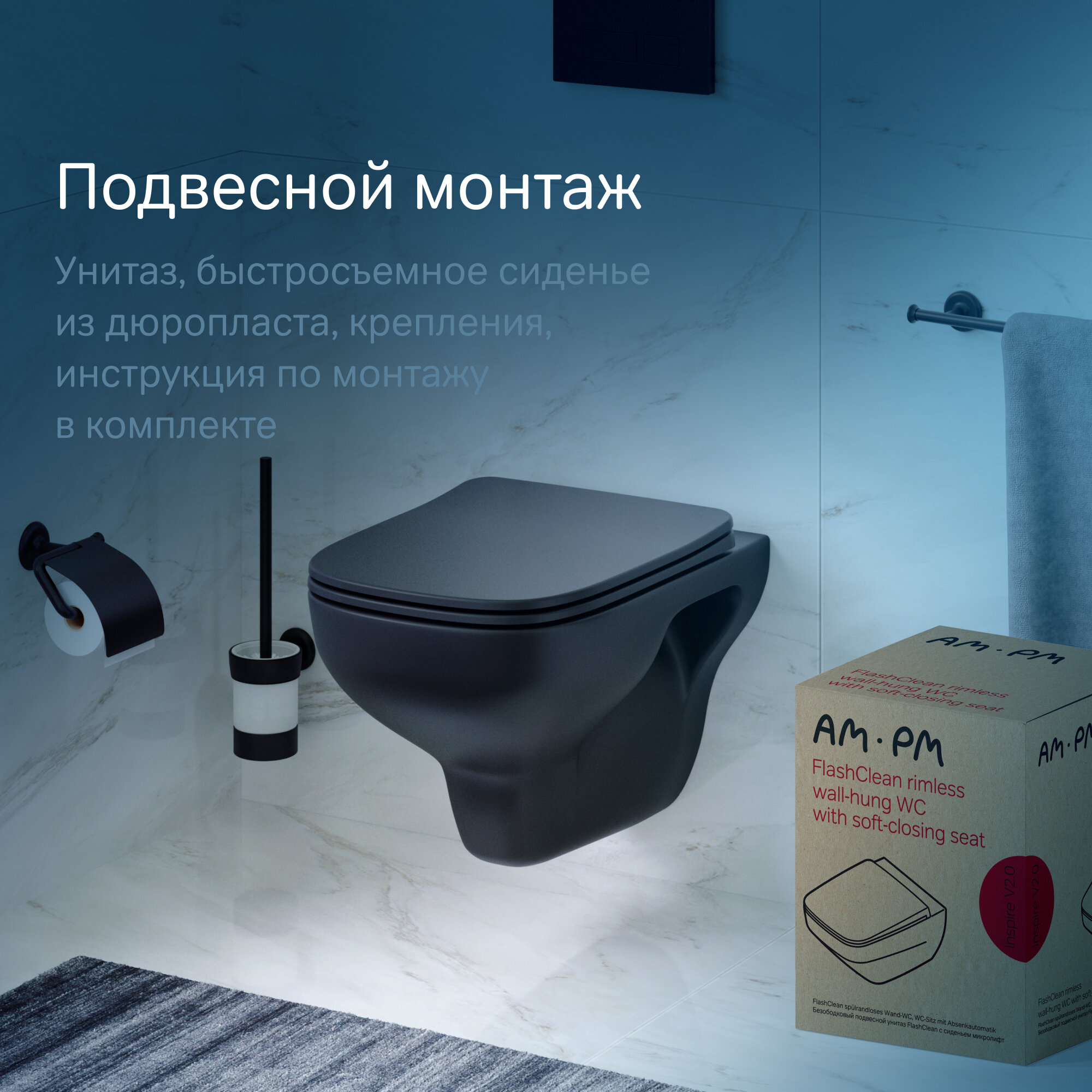 Подвесной унитаз AM.PM X-Joy S FlashClean C85A1700MBSC безободковый крышка микролифт, черный матовый