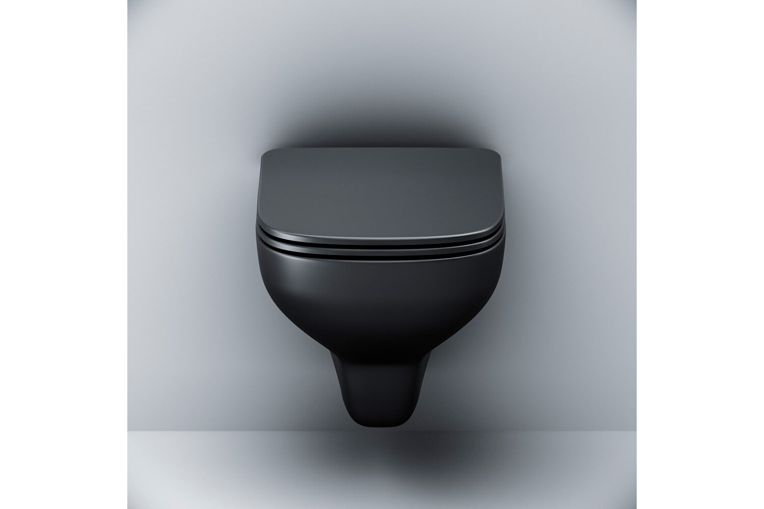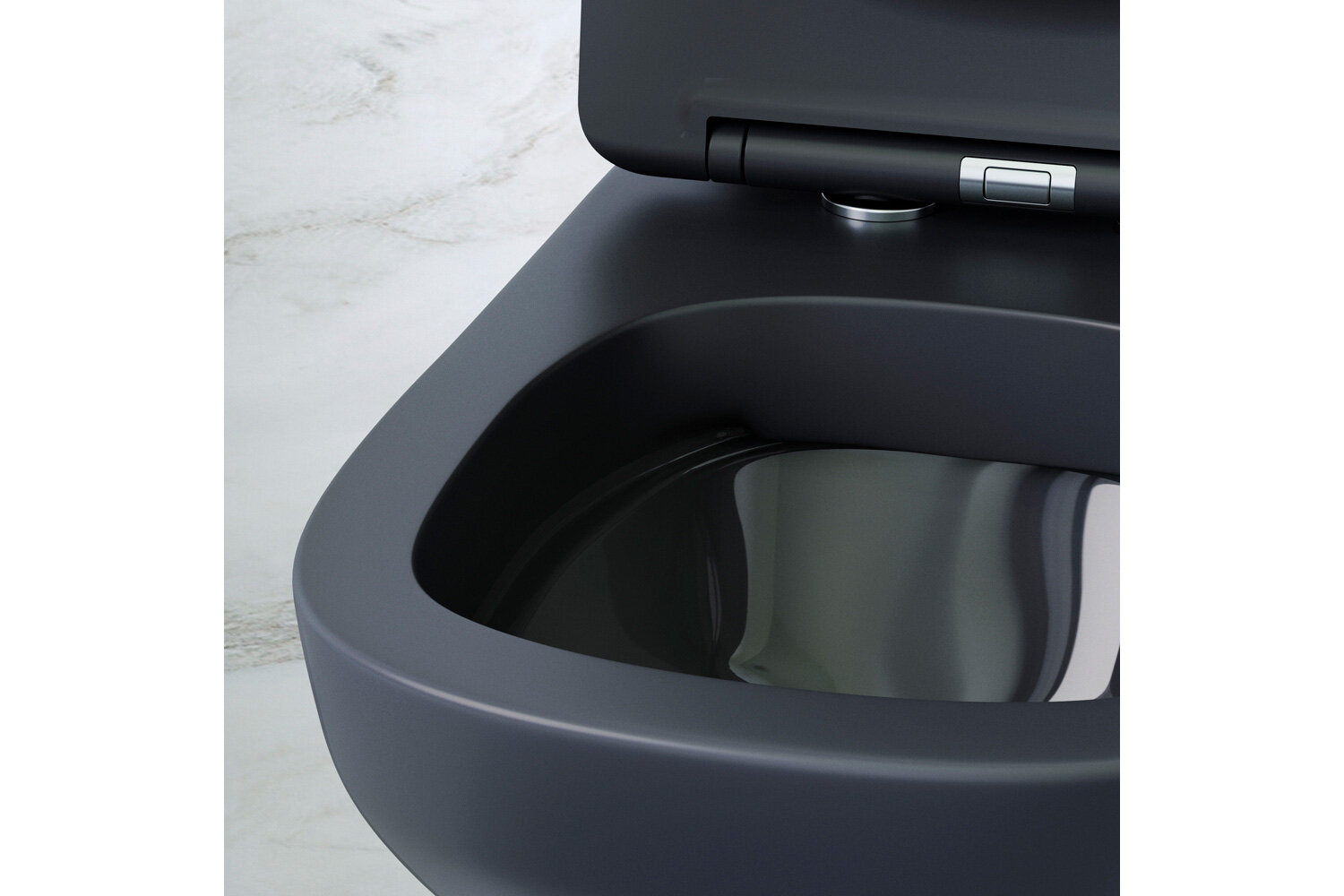 Унитаз подвесной AM.PM X-Joy S C85A1700MBSC черный, безободковый, с быстросъемным сиденьем микролифт из дюропласта, стекловидный фарфор